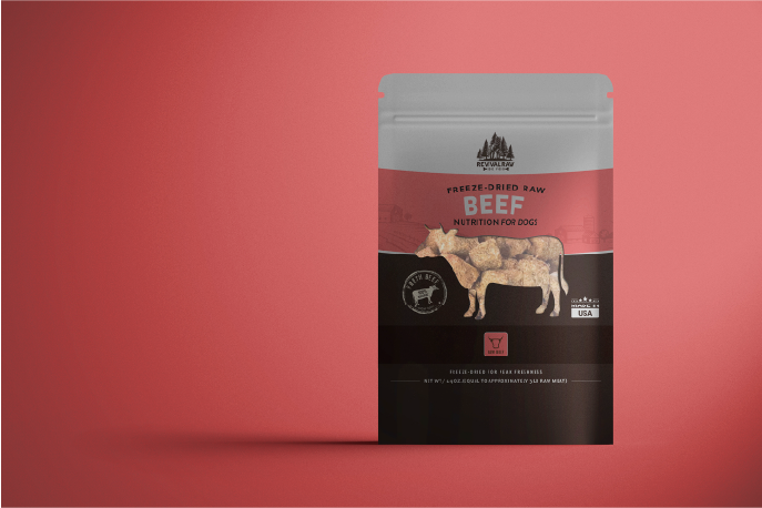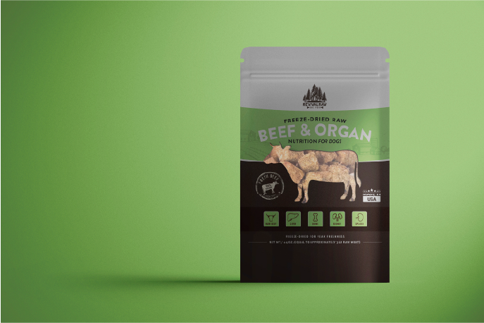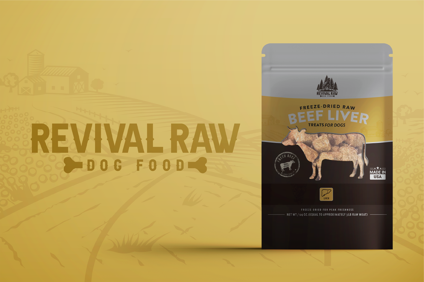 For Revival Raw, a raw-dog-food company offering high-quality raw meals made from real meat, organs, and tripe delivered frozen, I developed packaging design that reflects the brand’s commitment to clean, natural nutrition and transparent simplicity.The packaging uses minimal, clean design with clear labeling and a restrained color palette to emphasize “real food, no fillers, no additives.”